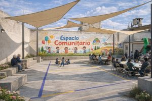 La propuesta se basa en una intervención de bajo costo y alto impacto social, priorizando la instalación de una cubierta tipo velaría que brinde sombra y protección contra la intemperie, permitiendo el desarrollo de actividades aun en condiciones de fuerte asoleamiento o lluvia ligera. Esta solución no solo mejora el confort, sino que amplía el uso del espacio para talleres, reuniones vecinales, eventos culturales, actividades recreativas y celebraciones comunitarias.